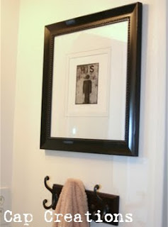 I spray painted the frames black, separated the 2 layers of matting, threw out the smaller one and spray painted the larger one white. (Be sure to use matte/flat paint when painting the matting or it will look wet once in the frame and pressed up against the glass.) I had the His and Hers pictures laying around. (One of those things that I liked but didn't know when or where I would use them.) And now I have some neat pictures that I love!